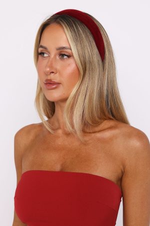 Mrs Clause core in the Libbi Headband Burgundy! Features a thick band in black with velvet fabrication for a playful yet polished finish. Style it with a simple Christmas-day dress and sandals for an elevated yet relaxed look.
