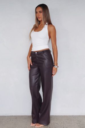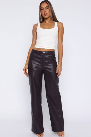 Own the moment in the Life Affair PU Pants in Deep Mauve! Features a button and zipper closure centre front. belt buckle holes pockets side front and back centre. Have sexy and sleek look by pairing with a bustier and kitten heels!