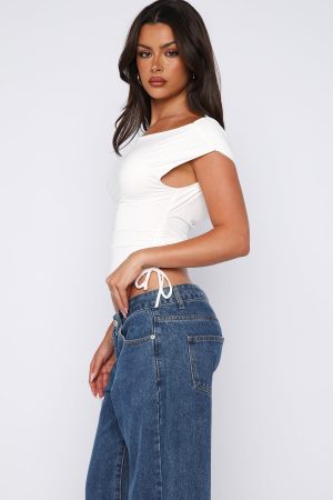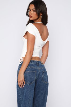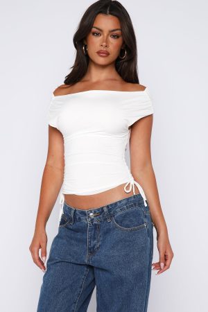 Your new go-to for cute. casual days. The Lifetime Member Top in white features an adjustable off or on-the-shoulder design. an ultra-soft. stretchy fabric and a fully lined finish for all-day comfort. Complete with ruched sides and adjustable drawstrings to create your perfect fit.