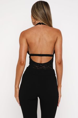 Earn style points in Like I Never Left Lace Bodysuit Black. Features a halter style neckline. plunge neckline. popper closure and lined. stretch fabric. backless design and an easy slip on design. Complete the look with your favourite pair of White Fox Denim Jeans and gold accessories for a dreamy look!