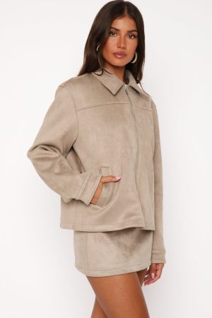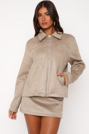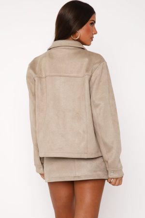 Keep it functional this autumn season in the Like The Old Days Faux Suede Jacket Sand. Features long sleeves. front zipper closure. collard neckline. side pockets and a gorgeous faux suede fabrication. Pair with the matching Like The Old Days Faux Suede Mini Skirt Sand for a super cute AM to PM look!