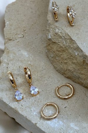 The Little Things Earrings Set Gold is a must-have accessory! Featuring three pairs of gold hoop and hugging earrings with gold toned hardware and diamanté detail.