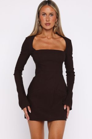 Living For Love Long Sleeve Mini Dress ChocolateLiving For Love Long Sleeve Mini Dress Chocolate