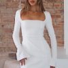 The Living For Love Long Sleeve Mini Dress in Chocolate combines timeless elegance with modern flair. Featuring a square neckline. flared long sleeves with split cuffs. and a fitted silhouette that flows into a flared skirt. this dress is both flattering and sophisticated. Designed with faux pockets and a fully lined interior. it ensures comfort and style. The back is finished with an invisible zipper and hook-and-eye closure for a seamless look. Pair it with kitten heels and simple gold jewelry to complete a chic ensemble.