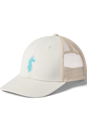 Equipped with a mesh back panel. an adjustable snapback closure. and a woven patch graphic. the Llama Trucker Hat is 100% recycled comfort.
