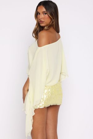 Let your summer sparkle with every step when wearing the Look Within Sequin Mini Skirt in Lemon! Features a fixed waistband. A-line silhouette. and all-over sequin detailing. The invisible side zipper with hook-and-eye closure ensures a smooth fit. and the skirt is fully lined for comfort. Style with the Static Heart Top and kitten heels for a golden hour look.