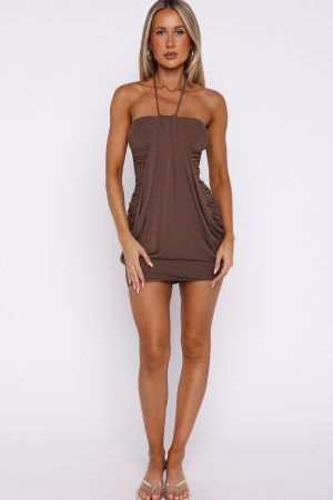Be the first to review “Looking For Answers Halter Mini Dress Mocha”