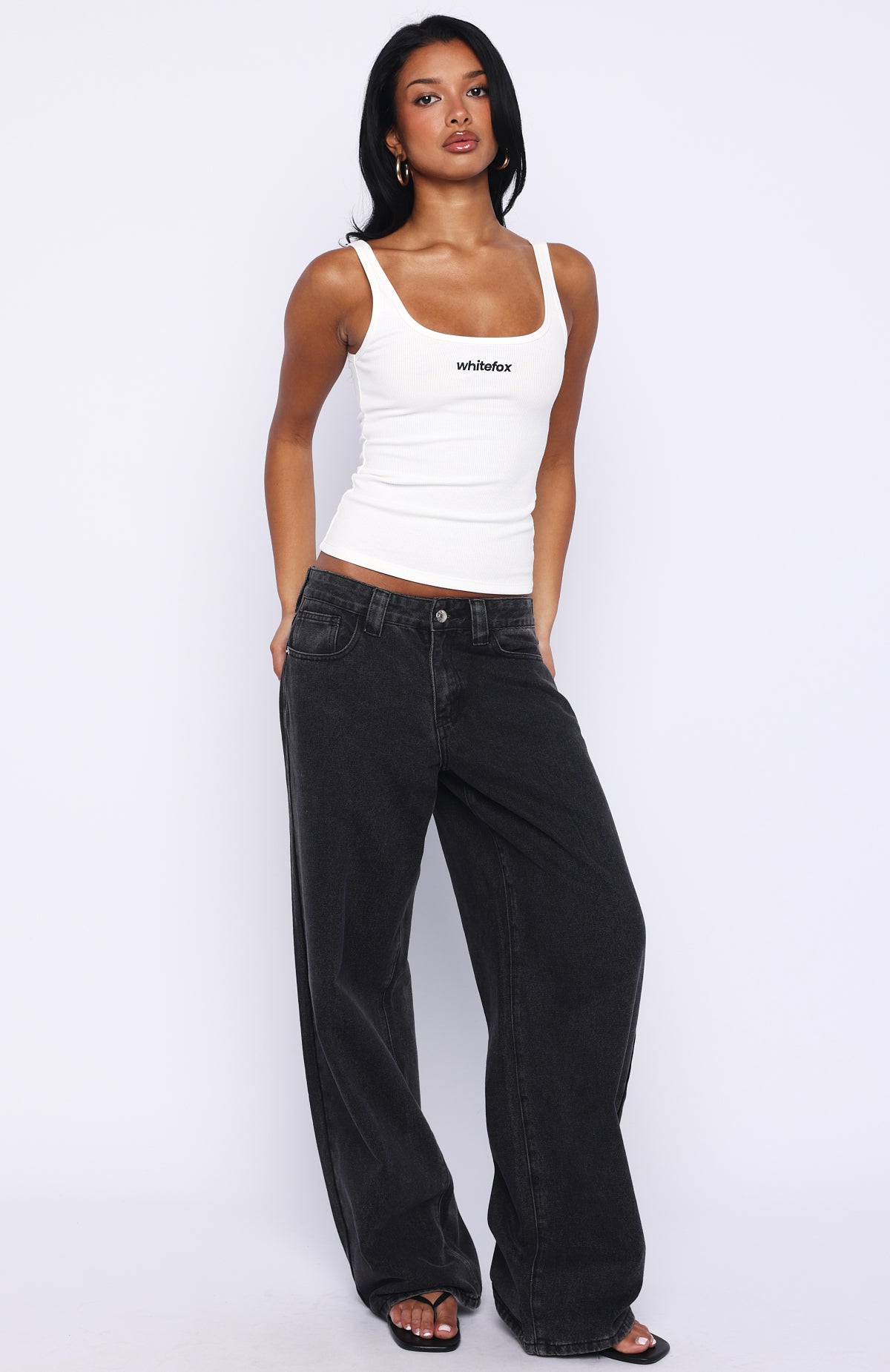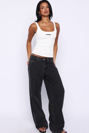 Basics done right in the Lost In The Moment Tank Top in White. Featuring thick shoulder straps. a flattering scoop neckline and bold embroidered White Fox text at the centre front. Crafted in a ribbed. high‑stretch fabric with a soft mesh lining for comfort and shape‑hugging fit. Style with your go-to pair of denim jeans. fave sneakers and sunnies for a chill autumn weekend look.
