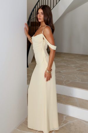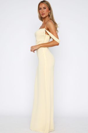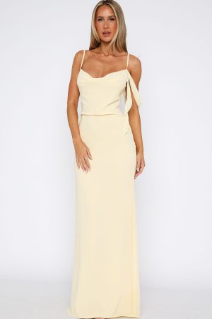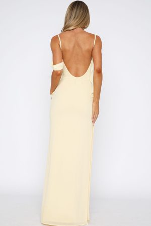 Love is in the air with the Love Blossoms Maxi Dress Lemon! Featuring thin. adjustable shoulder straps. a cowl neckline. side strap detailing. backless. maxi length. lined. and invisible side zipper and clasp closure. Style with high shine accessories and a kitten heel for a night you won’t forget!