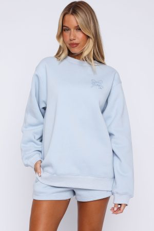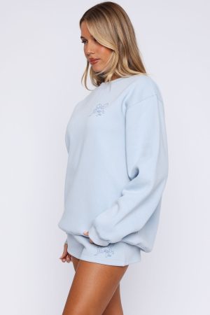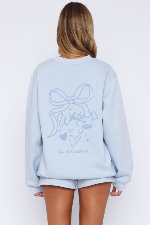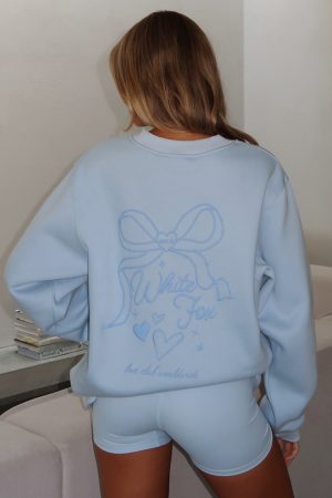 This cozy sweater will win your heart all year long! The Love You Forever Oversized Sweater Baby Blue features an oversized fit. high scooped neckline. ribbed cuffs. hem and neckline. super soft fleece lining and puff print/printed logo front centre. Complete the set with the Love You Forever Lounge Shorts Baby Blue and snug boots!