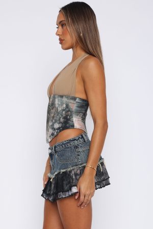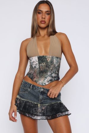 Embrace your untamed spirit in the Lover Girl Bustier in Mystic Animal! Features self tie halter straps low plunge neckline. boning on bodice to define the waist. back zipper with hook and eye closure and fully lined for a smooth fit. Complete the look by pairing with the Missing Me Cargo Short Off White and simplistic jewellery to let the bustier speak for itself!