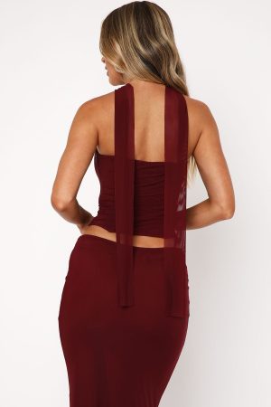 The Lovers Lane Strapless Bustier Burgundy is our ultimate dream come true! Features a neck tie design. strapless neckline. boning in bodice. invisible side zipper and clasp closure. cropped length and lined. Style with the Loving You Maxi Skirt Burgundy for a swoon worthy look!
