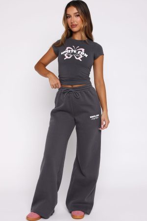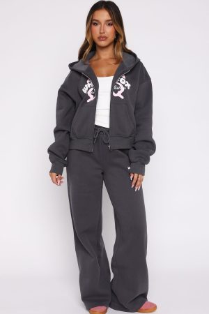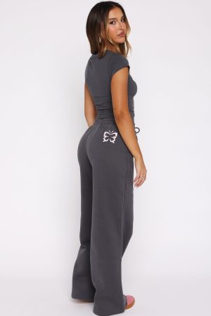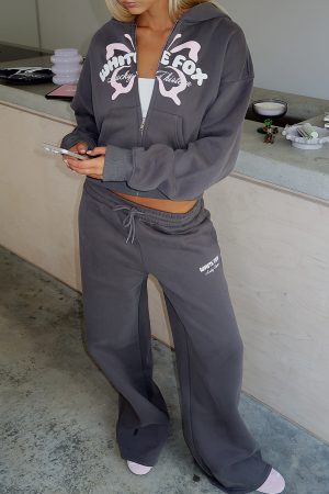 Loungewear is taking over our wardrobe and the Lucky Thirteen Audrina Wide Leg Sweatpants Volcanic is on high rotation! Designed with a thick elasticated waistband featuring an external drawstring tie. and a wide leg silhouette. The White Fox puff print text side front paired with printed butterfly graphic side back adds a signature touch. while the soft. fleece interior ensures a cozy feel. Style with the matching Lucky Thirteen Audrina Boxy Zip Front Hoodie for the cutest fit.