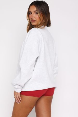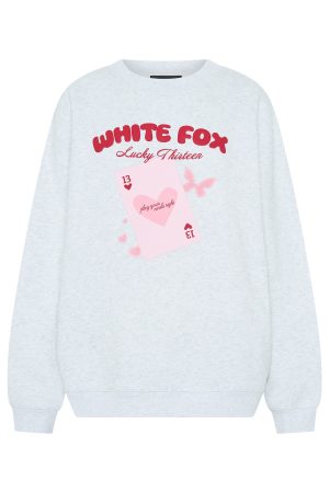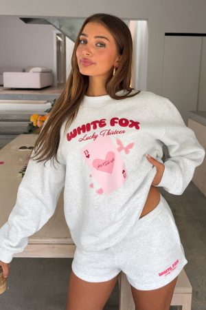 The Lucky Thirteen Kalena Oversized Sweater Grey Marle will keep those winter chills at bay! Designed with slouched shoulders and ribbed hems which round out an oversized silhouette. Featuring long sleeves. and an unlined fleece interior. this hoodie delivers a cozy feel. White Fox puff‑print text embellishes the centre front. paired with a printed graphic. Style with the matching Lucky Thirteen Charise Booty Shorts.