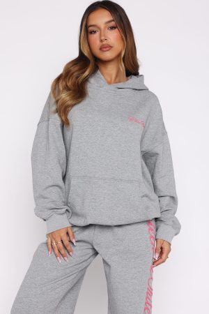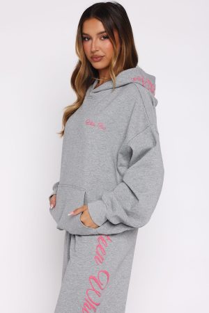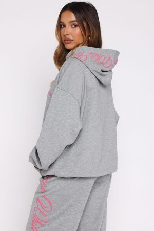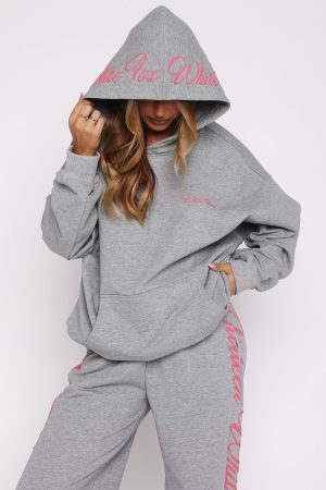 Wrap yourself in perfection with the Lucky Thirteen Shaya Oversized Hoodie in Dark Grey. Designed with a relaxed hood. slouched shoulders and ribbed hems which round out an oversized silhouette. Featuring long sleeves. a roomy front pocket. and an unlined premium loop-back interior. this hoodie delivers a cozy feel. White Fox puff‑print cursive text embellishes the side front and hood hemline. Style with the matching Lucky Thirteen Shaya Wide Leg Sweatpants.