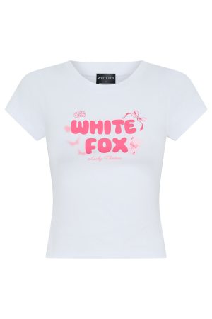 The Lucky Thirteen Stephanie Baby Tee White features a timeless crew neckline and sweet cap sleeves. this tee hugs the body with for a form‑fitting silhouette. At its centre. White Fox puff-print text pops. paired with printed graphic—while the slight stretch material ensures comfort and effortless movement. Style with the matching Lucky Thirteen Stephanie Lounge Shorts and layer the Lucky Thirteen Stephanie Oversized Hoodie for colder days.