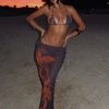 In a love affair with the Luminous Maxi Skirt in Blush Bloom! Features side cut out design. self ties for a desirable fit and semi sheer fabrication. Complete the look with a White fox going out top. kitten heels and gold accessories for the perfect beach club fit.