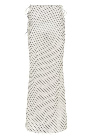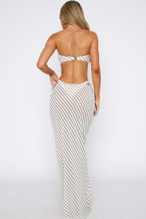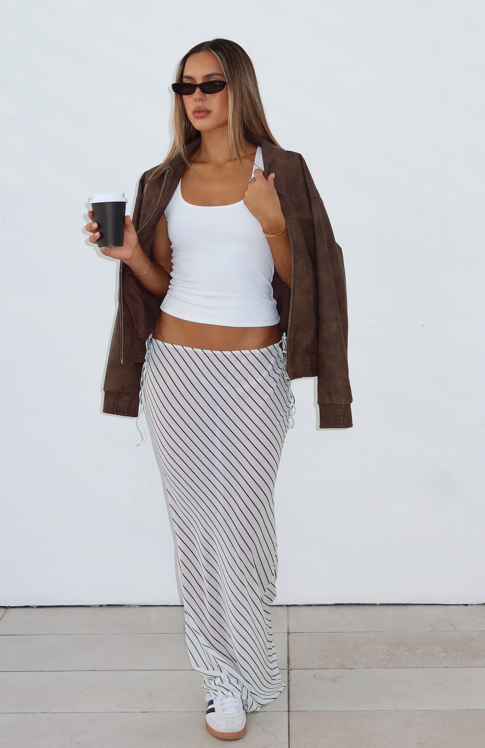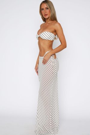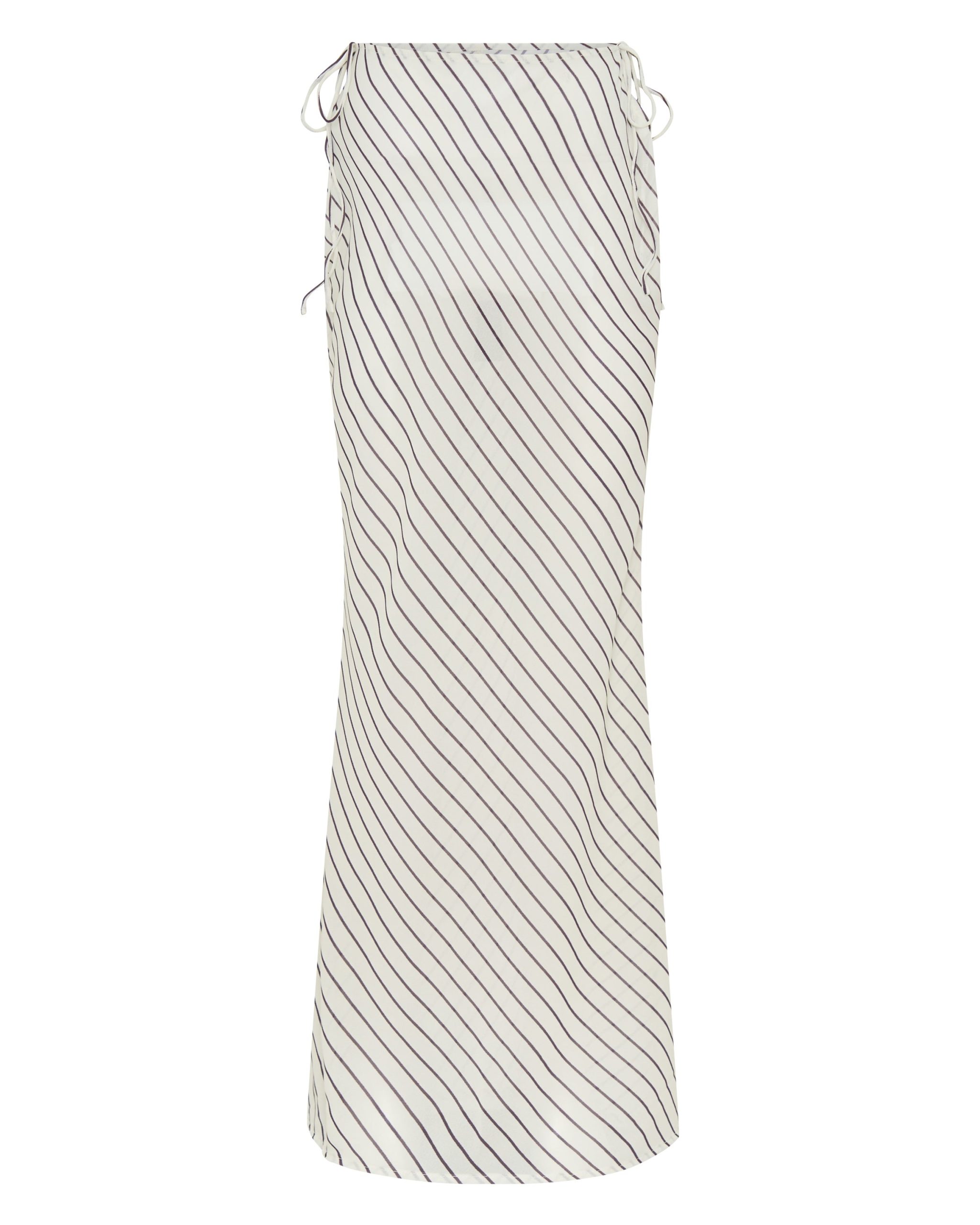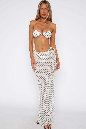 Whether it’s cocktail hour under the summer sun or an insta photoshoot. the Luminous Maxi Skirt Cream/Choc Stripe will soon be your go-to. Features a maxi length. cut-out waist design. side self-tie straps. unlined fabric and an easy slip on style. Pair with cool shades and gold accessories for a complete look.
