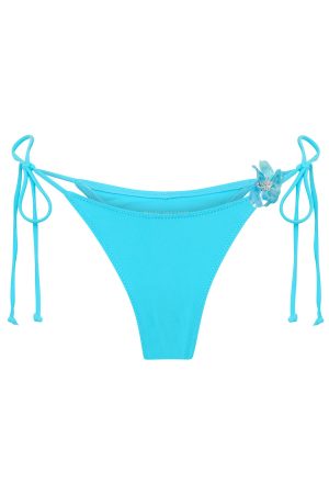 Create waves in the Lupine Bottoms Paradise Blue. Features high hip design. lined. thong cut design. gold plate at centre back and hibiscus flower detailing at the side. Complement the bottoms with the matching Bikini Top in Paradise Blue and your favourite pair of sunglasses!