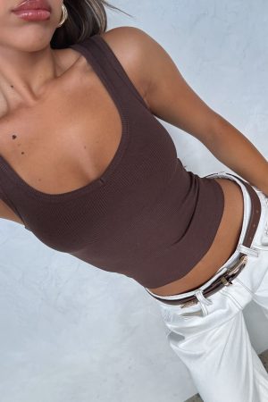 Say hello to your must-have wardrobe essential. The Mad About Love Tank Top Chocolate features thick shoulder straps. low cut neckline. unlined and stretch material for an easy slip on design. The most versatile tank. style with any of your White Fox faves or layer under a blazer for the cooler months!