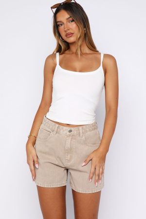 Effortlessly elevated. The Maddy Denim Shorts in Sesame reinvent a classic silhouette with a thick waistband with streamlined belt loops. and secure button-and-zip closure. Featuring five functional pockets and a sleek faux leather White Fox label at the back. they’re unlined for fresh. versatile styling that lasts. Pair with an oversized tee. kitten heels and layered gold jewellery for understated but stylish fit!