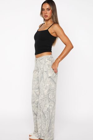 No festival wardrobe’s complete without the Maeve Low Rise Wide Leg in Sand Camouflage. With its low-rise fit and wide-leg silhouette.  It’s built with a front button‑and‑zipper closure. belt loops. five-pocket design. and faux leather label at the back. Pair it with a fitted tank. chunky boots. and layered gold chains for a look that owns the daylight and the night.