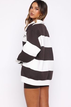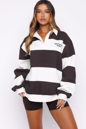 The Make It Known Oversized Henley Sweater Dark Chocolate is the perfect blend of sporty and cosy. It features a classic collar neckline with a button-up placket. drop shoulders. and long sleeves with ribbed cuffs. The ribbed hemline adds structure. while the embroidered White Fox Sport logo on the side front enhances its sporty appeal. Inside. the soft fleece lining ensures warmth. Style with a matching active set for the cutest match run and pilates fit.