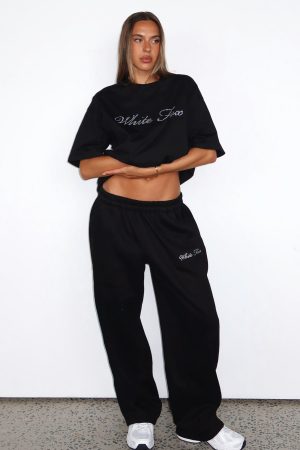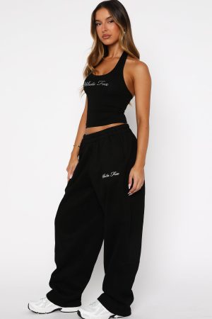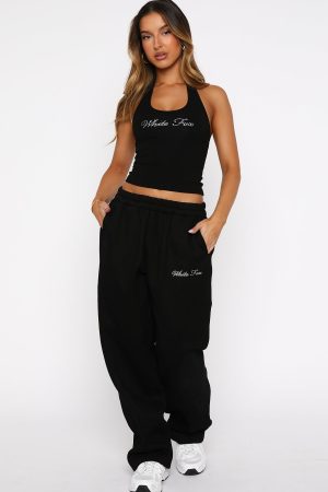 Bring back the 2000’s. baby! The Make It Or Break It Barrel Leg Sweatpants Black feature an oversized. laid-back silhouette with an elasticated waistband and internal drawstring for an adjustable fit. The barrel-leg cut gives a nod to Y2K streetwear vibes. while the pull-on construction and side hip pockets keep it practical. Finished with diamante White Fox text side front and unlined fleece interior. Style them with the matching Make It Or Break It Quarter Zip Sweater for a coordinated set.