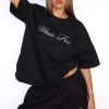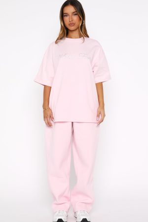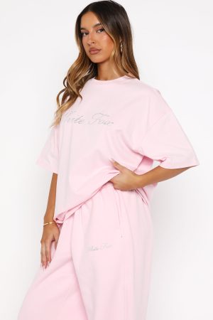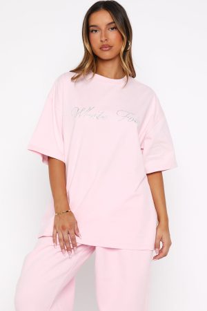 My go-to self-care tee. meet the Make It Or Break It Oversized Tee in Pink. It has a relaxed. oversized fit with a classic crew neckline and short sleeves. and is finished with sparkling diamante White Fox text across the centre front. Style with the matching Make It Or Break It Wide Leg Sweatpant.