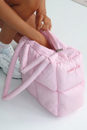 Carrying all your active bits has never looked cuter with the Malik Puffer Shoulder Bag Marshmallow. Features four strap design with hand straps and over the shoulder. puffer fabrication. stitched White Fox text on side and zipper closure. Pair with your fav White Fox Active set for the cutest fit to wear to pilates.