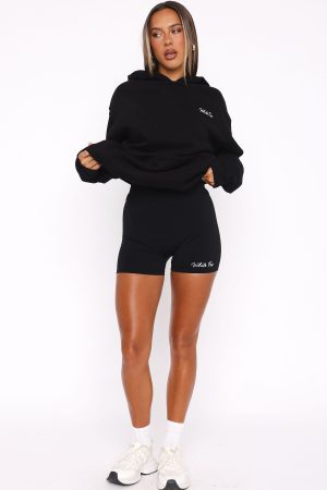 Hit refresh on your loungewear collection in the Match Your Words Bike Shorts Black! Features a mid rise fit. thick elasticated waistband. printed logo detailing. unlined. high stretch fabric and super comfortable. Complete the set with the Match Your Words Oversized Hoodie Black.