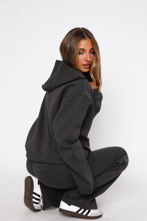 Hit refresh on your loungewear collection in the Match Your Words Oversized Hoodie Charcoal! Features an oversized fit. elasticated ribbed cuffs & hem. hood. soft fleeced fabric for extra comfort. large front pocket and WF logo front side. Complete the set with the Match Your Words Wide leg Sweatpants Charcoal.