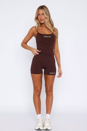 Elevate your casual wardrobe with the Maybe We Can Try Bike Shorts in Chocolate. These bike shorts are high waisted with a supportive waistband and WFA logo centre front of the leg. Pair with the matching Maybe We Can Try Singlet for the ultimate cool girl gym fit!