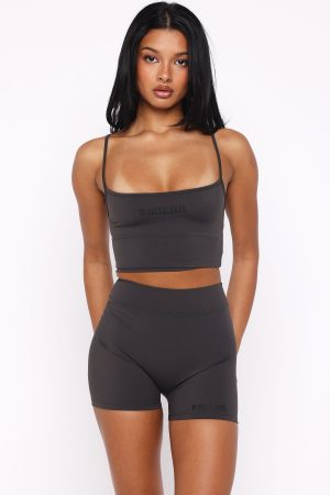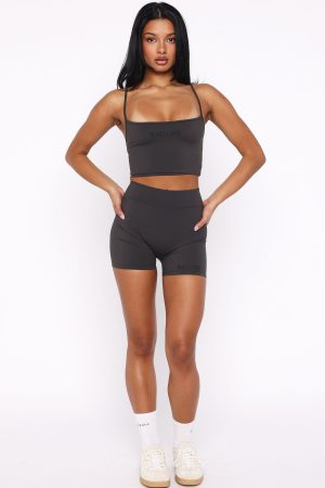 Your next sweat session is calling out for the Maybe We Can Try Singlet in Charcoal. Features spaghetti adjustable straps. square neckline. full length. stretch fabrication for easy slip on use and White Fox font centre front. To complete the look pair with the matching Maybe We Can Try Bike Shorts in Charcoal for a look we love!