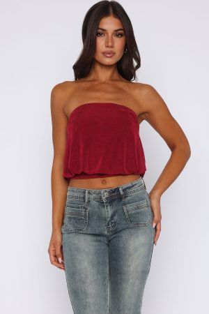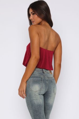 Embrace the summer heat in our Meant To Amaze Strapless Top in Berry! Featuring a strapless design with elasticated hem and gel grip. lined material. cropped length. elasticated bottom hem and slight stretch material.