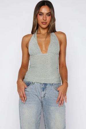 Make unforgettable memories in the Midnight Memories Halter Top in Mint! Features thick self tie halter straps. plunge neckline. under bust seam for support. subtle sparkle detailing and stretch fabrication for an easy slip on and off. Team with jeans. kitten heels and sunnies for a memorable look!