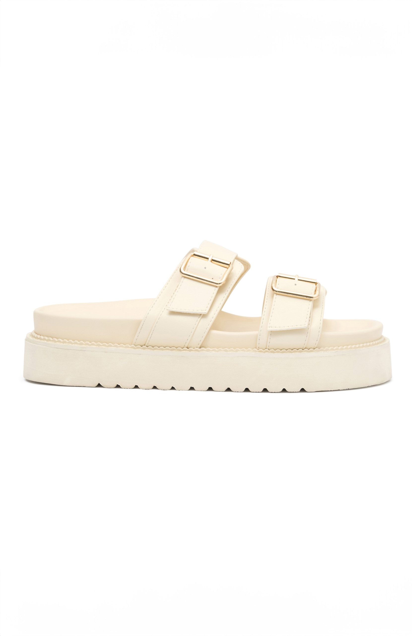 Slip on the Mila Slides in Ivory and you are ready for your weekend adventures! Featuring an easy slip on design. open rounded toe. double strap design with buckle detail and open back. You need these slides to complete your summer’s day fit!
