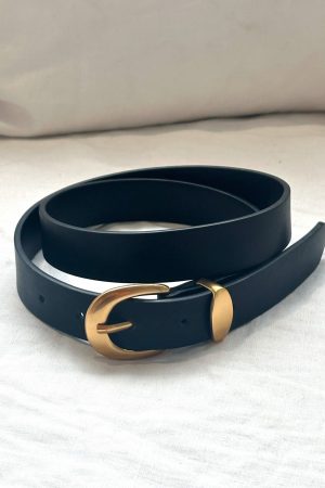 Newest obsession: dainty belt! The Milo Belt in Black/ Gold features a thin strap with a gold buckle and keeper. Winter accessories have never looked better!