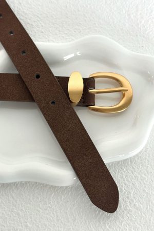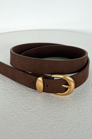 Newest obsession: Suede! The Milo Belt Chocolate Faux Suede/Gold features a thin strap with a gold buckle and keeper. Winter accessories have never looked better!