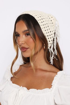 Cottage-core charm at its finest! The Morgana Head Scarf Cream features a delicate crochet triangle shape with a softly frayed hem. Wear it tied at the nape or styled as a bandeau for effortless. breezy elegance.