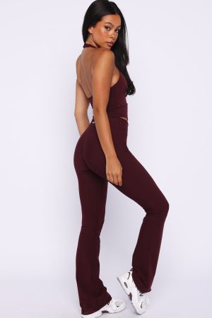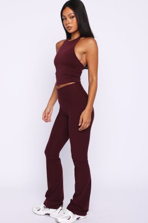Busy body. The Movement Flare Leggings in Merlot feature a thick. high-waistband for secure support. high-stretch fabrication. and a flattering flared leg silhouette. Unlined for lightweight comfort. finished with subtle WFA initials printed on the back side. Style with the matching crop or bra for a cute. coordinated fit.