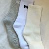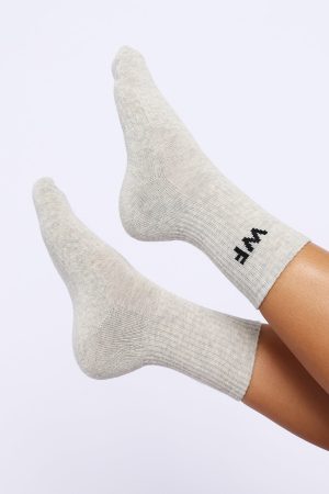 Refresh your everyday must haves! Introducing the My Peace Socks Set Black/Grey/White. Crafted from a soft fabrication. these socks offer a cozy fit with just the right amount of stretch. Each pair features the iconic WF initials. adding a touch of signature flair to your everyday essentials. Perfect for lounging at home or adding a relaxed vibe to your casual outfits.