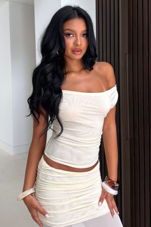 Check out the Need Your Heart Off Shoulder Top in Cream. now on our New Arrivals page! With a chic off-shoulder neckline. fitted bodice. and high-stretch sheer. mesh fabric. this fully lined piece offers both style and comfort. Style with the matching Need Your Heart Maxi Skirt Black and heels for a fabulous fit!