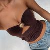 Tailored for you. The Never Bothered Strapless Top Bone features strapless neckline. shell gold hardware on bust. cut out centre front and ruched fabrication. Complete the look with a mini skirt. gold jewellery and shoulder bag for a look we love!