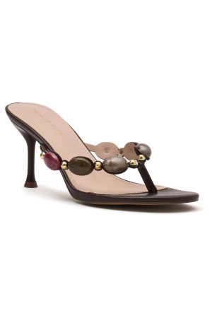 The ultimate summer shoes have just landed! Welcome the Nina Mules in Chocolate! Features open round toe. two straps with beaded detailing. round back heel and kitten heel hight. These shoes dress up any fit and how could they not with those stunning beads.
