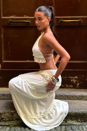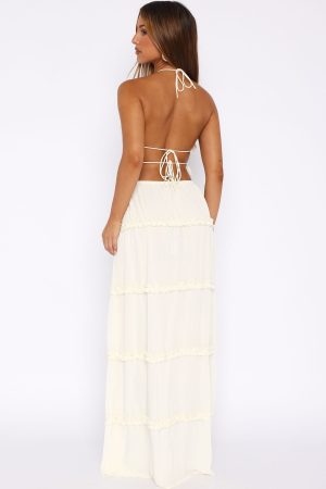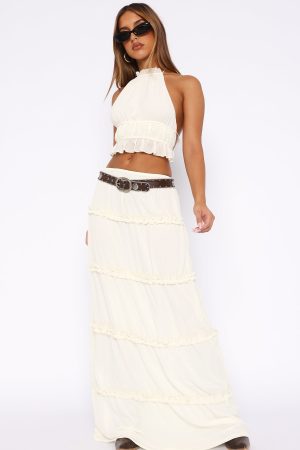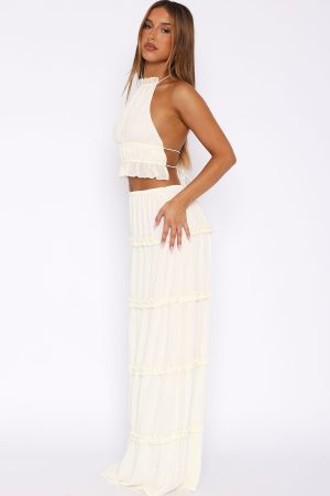 The No Contact Maxi Skirt Off White is the perfect summer coded fit’. Featuring an elasticised waistband. maxi length. lined and ruffle detailing. Pair with the matching No Contact Top to complete the look!