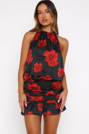 Be the first to review “No Second Thoughts Halter Mini Dress Black Scarlet Bloom” Cancel reply