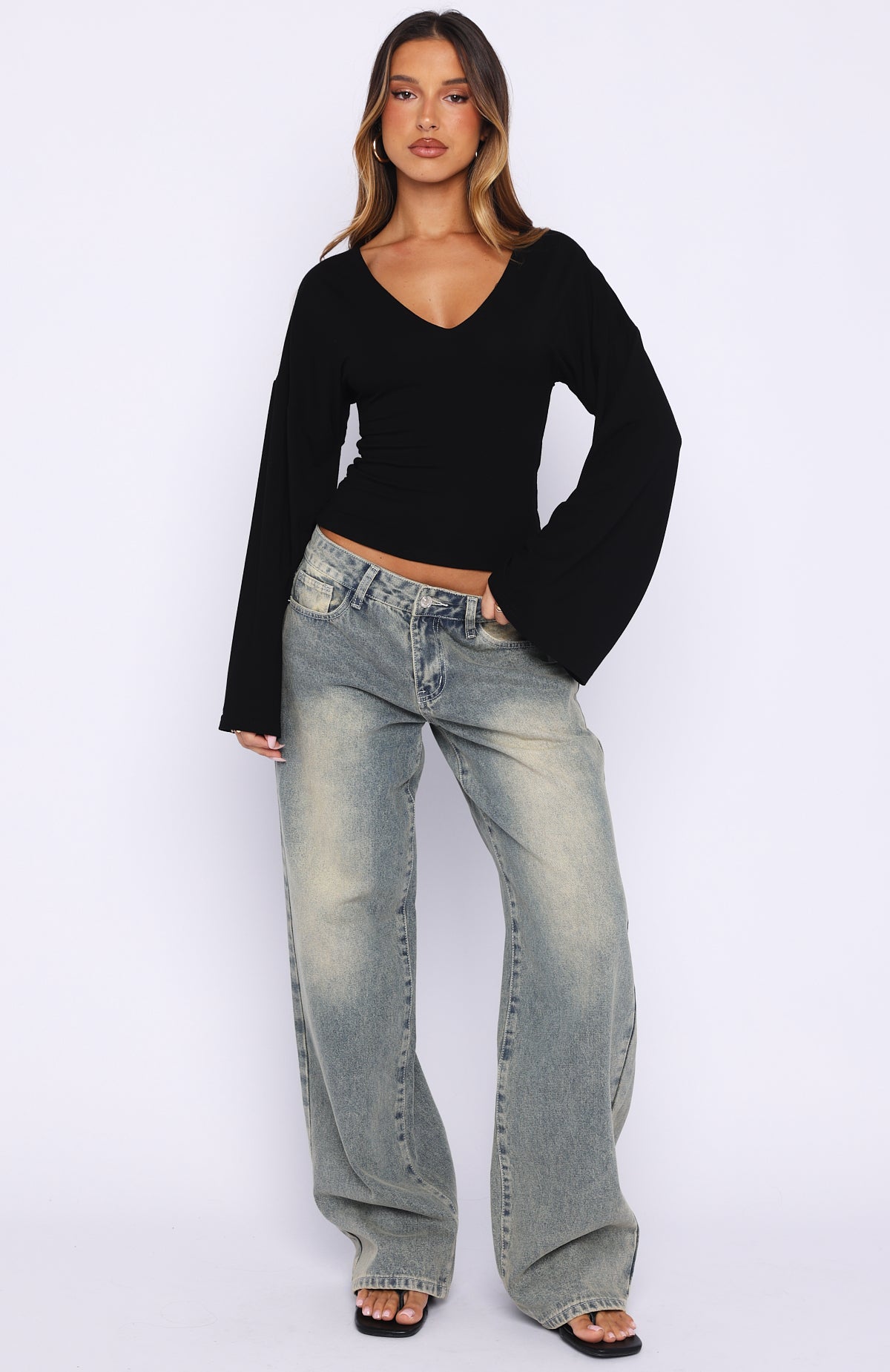 The Nobody’s Watching Long Sleeve Top Black is the perfect blend of basic and timeless. It features a flattering V‑neckline. wide long sleeves with drop shoulders. and a fitted bodice that gently contours. Fully lined and made with high‑stretch fabric. it delivers comfort. Pair with your go-to denim jeans. boots and layered with a jacket for cooler days.