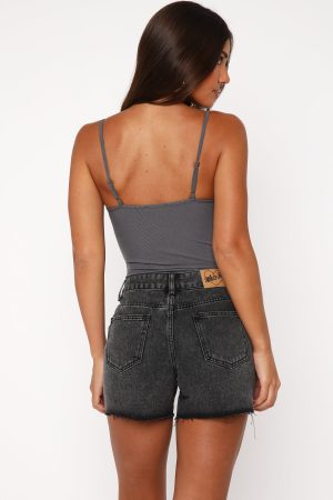 Summer loving in the Not Meant To Be Denim Shorts Black Acid. Features a front zipper and button closure. belt loops. 5 pocket design. frayed hemline and WF logo side back. We love this teamed with a white baby tee and sunglasses for your next sunday brunch fit’!