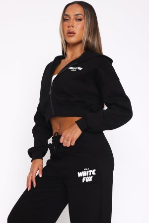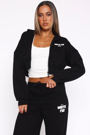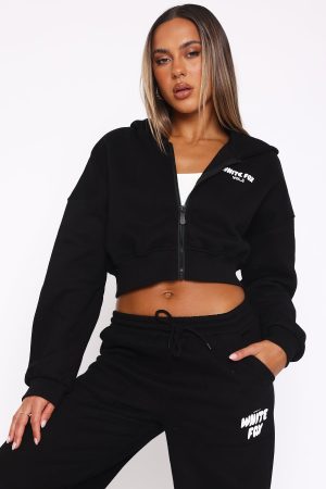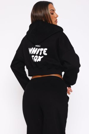 The Best Just Got Better! The Offstage Cropped Zip Hoodie Monochrome features an oversized fit. zip front. ribbed hemline and cuffs. collared neckline. cropped length. puff print logo side front and centre back and soft fleece fabric for extra comfort to keep you feeling cosy and warm! Pair with the Offstage Sweatpants for a casual look!